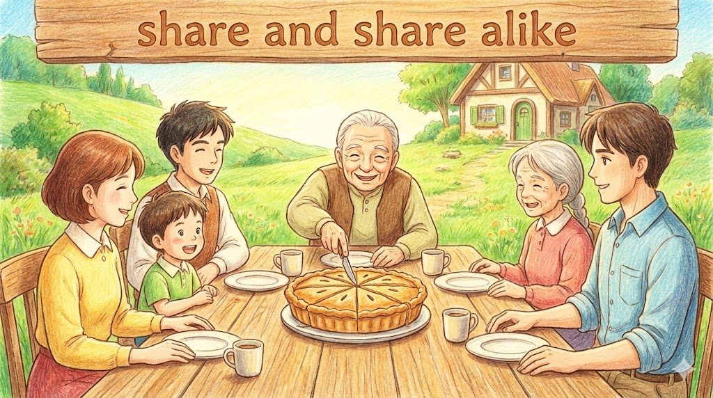 3. share and share alike (공평하게 나누다/똑같이 분배하다)