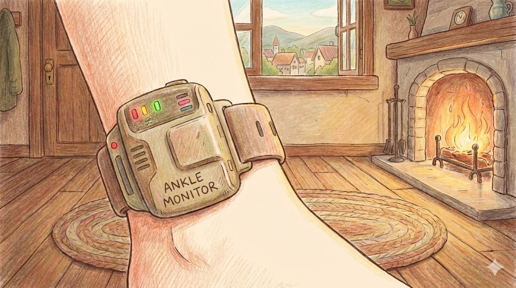 - 해석: 범죄자의 위치를 추적하기 위해 발목에 채우는 전자 장치입니다. (Electronic tag/bracelet이라고도 함)