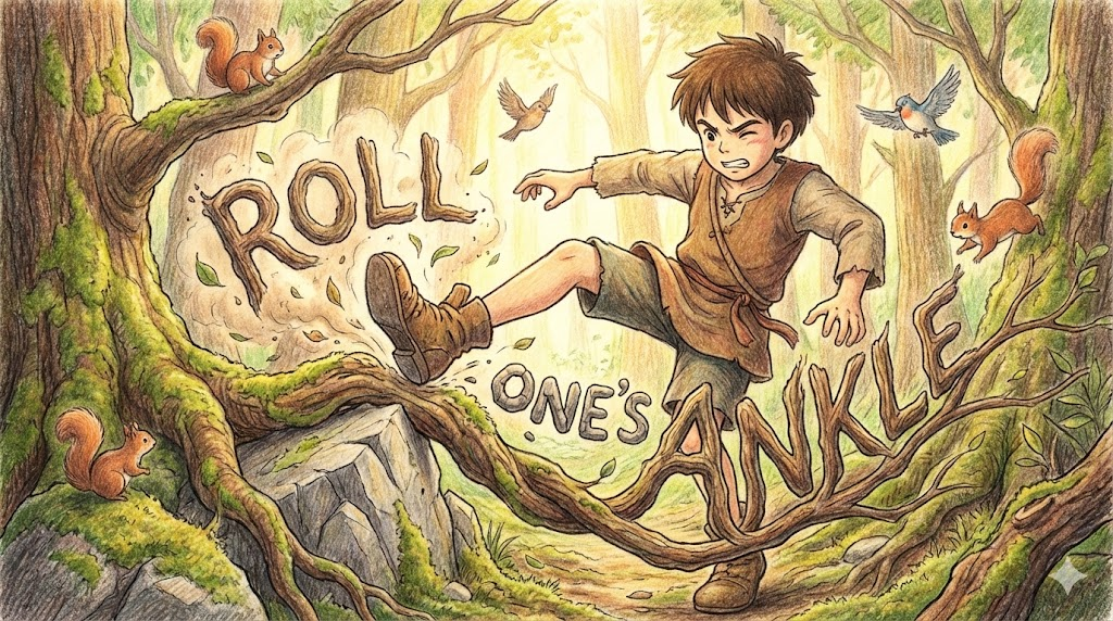 | roll one's ankle | 발목을 접질리다 | 동사구로, '회전'. | '발바닥' '이' '안쪽이나' '바깥쪽' '으로' '굴러가듯' '(' 'roll' ') '꺾이다'. |