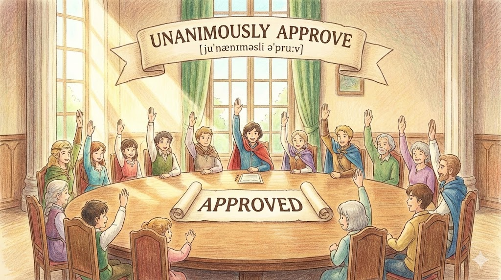 unanimously approve [juˈnænɪməsli əˈpruːv]