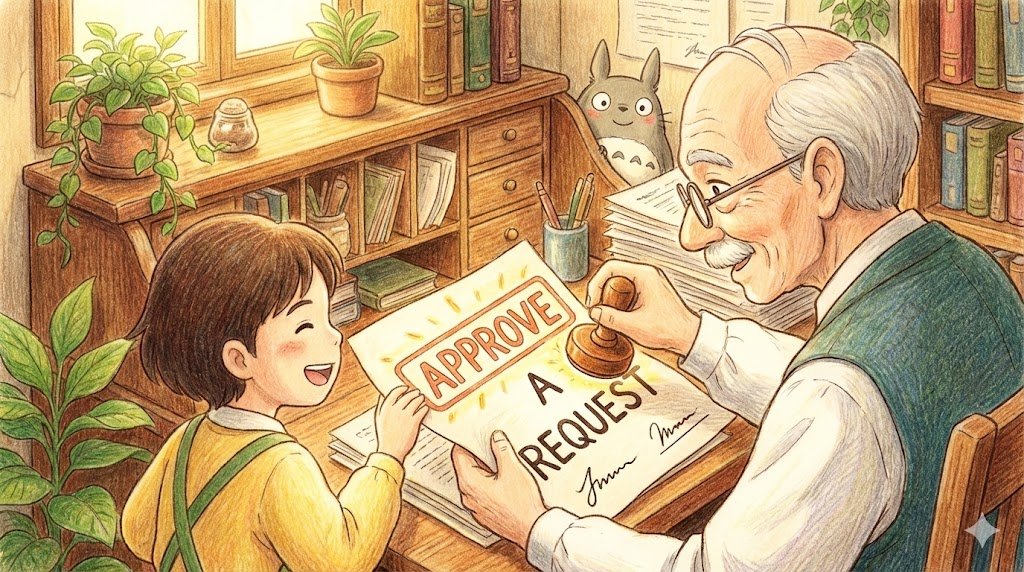 - 해석: 휴가 신청이나 구매 요청 등을 허락하는 것입니다.