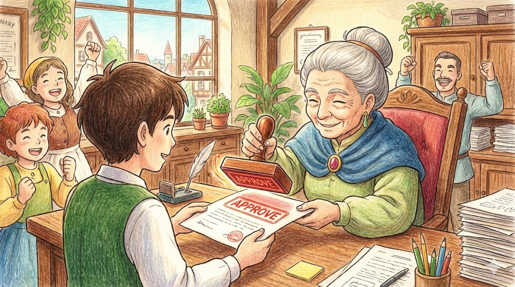 | 종합 뉘앙스 | (1) 서류나 계획을 검토(Test)한 뒤 '통과' 도장을 찍어주는 것(승인하다). (2) 어떤 사람이나 행동을 보고 '괜찮다/옳다'고 인정해 주는 것(찬성하다). | '검증 후 받아들임' |