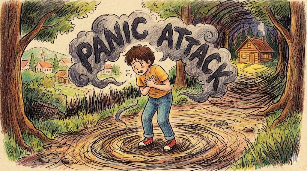 - 해석: 갑작스럽게 극심한 공포와 불안을 느끼며 숨이 가빠지는 증상입니다.