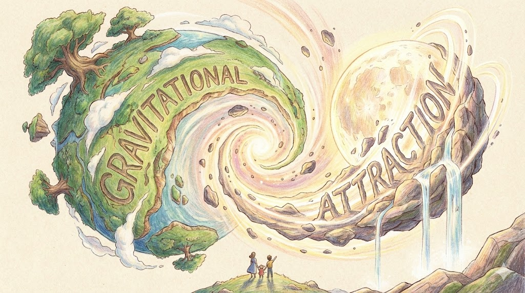 - The Earth has a gravitational attraction to the Moon. (지구는 달에 대해 중력 인력(끌어당기는 힘) 을 가지고 있다.)
