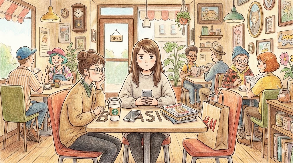 젊은 층에서, 특히 여성에게 부정적인 뉘앙스로 많이 쓰이는 슬랭입니다. 남들 다 좋아하는 것(예: 유명 브랜드 커피, 흔한 팝송, 유행하는 옷)만 좋아하고 '자신만의 독특한 개성이 없는 사람' 을 비꼬아서 부르는 말입니다. "너 참 뻔하다" 혹은 "속물이다"라는 느낌이 섞여 있습니다.