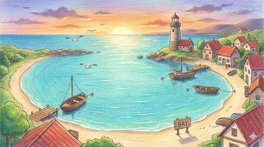 | 지리 (Geography) | 육지 쪽으로 둥글게 파고든 바다. | 움푹 들어간 곳 (Inlet) |