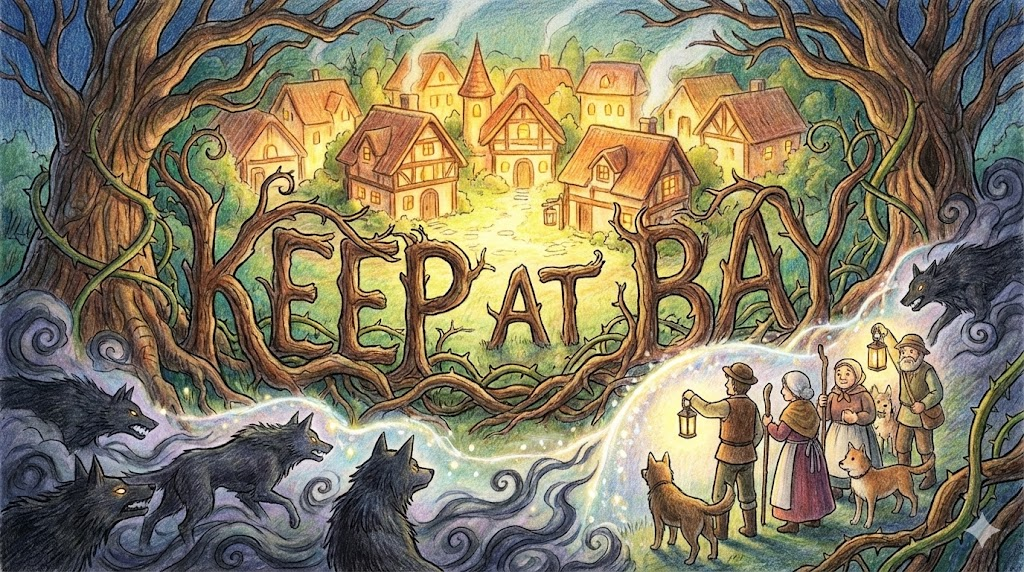 - He used a stick to keep the wolf at bay. (그는 늑대의 접근을 막기 위해 막대기를 사용했습니다.)