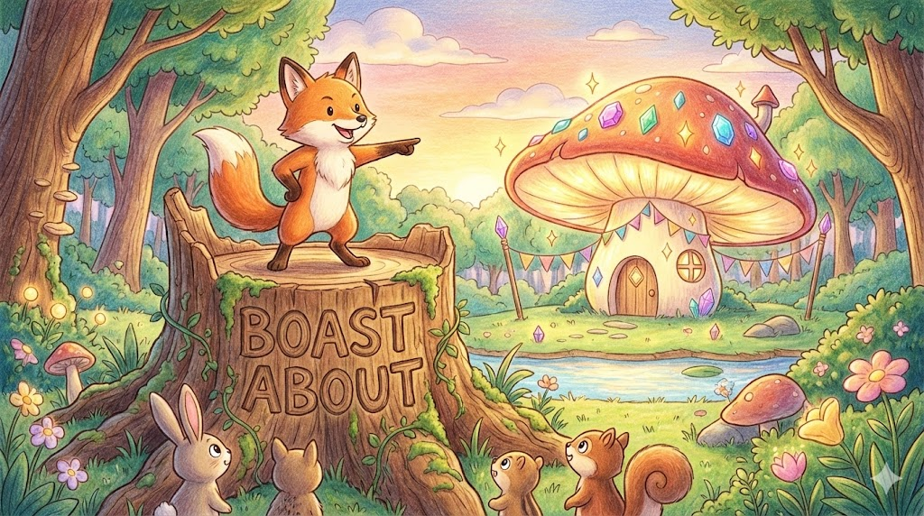 'Boast' 뒤에 전치사 about이 붙으면, 자랑하는 '구체적인 내용(주제)' 에 초점이 맞춰집니다. 단순히 으스대는 태도가 아니라, "내 차가 얼마나 비싼지", "내 아들이 얼마나 똑똑한지"처럼 특정 주제를 놓고 침이 마르도록 이야기하는 모습입니다. "Brag about"과 거의 같습니다.