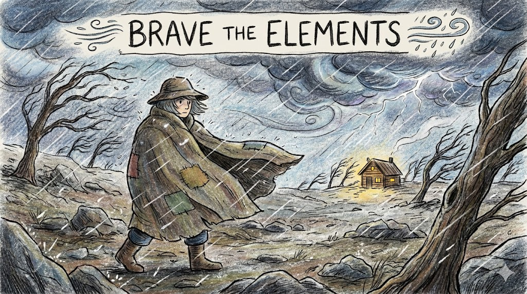 brave the elements, brave the storm, brave it out