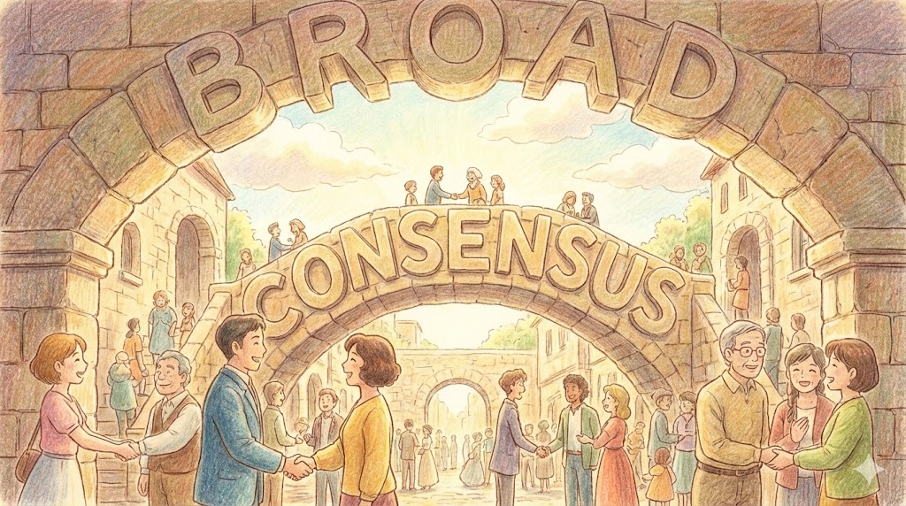 - 해석: (사회/정치 지문) 대다수의 사람이 동의하는 일반적인 합의를 말합니다.