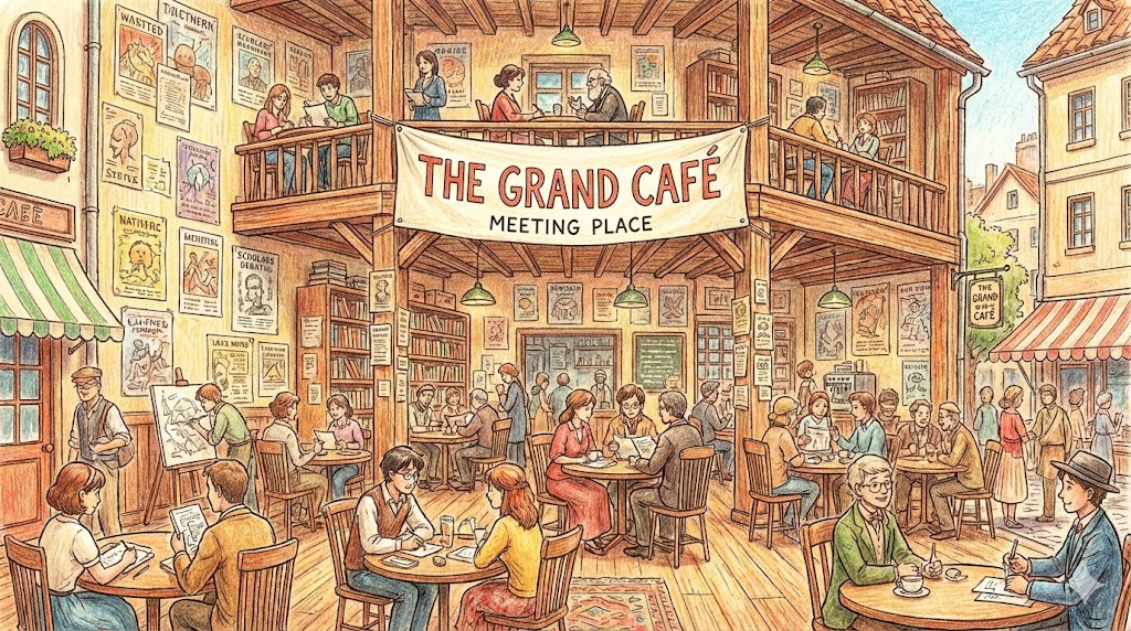 단순히 커피를 마시는 행위를 넘어, 카페라는 공간이 '사회적 교류, 토론, 독서, 사색의 장' 이 되는 생활 양식을 말합니다. 파리나 비엔나처럼 야외 테이블에 앉아 지나가는 사람들을 구경하며 '오랫동안 시간을 보내는 여유로운 라이프스타일' 을 설명할 때 주로 씁니다.