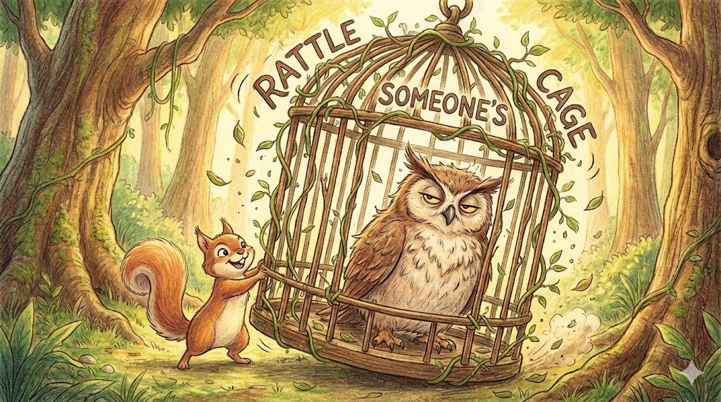 동물원 우리(Cage)를 흔들면(Rattle) 안에 있는 동물이 화를 내거나 놀라서 깨어나는 모습에서 유래했습니다. 조용히 있는 사람을 '일부러 건드려서 화나게 하거나', '주의를 환기시키기 위해 자극을 주는 행위' 를 뜻합니다.