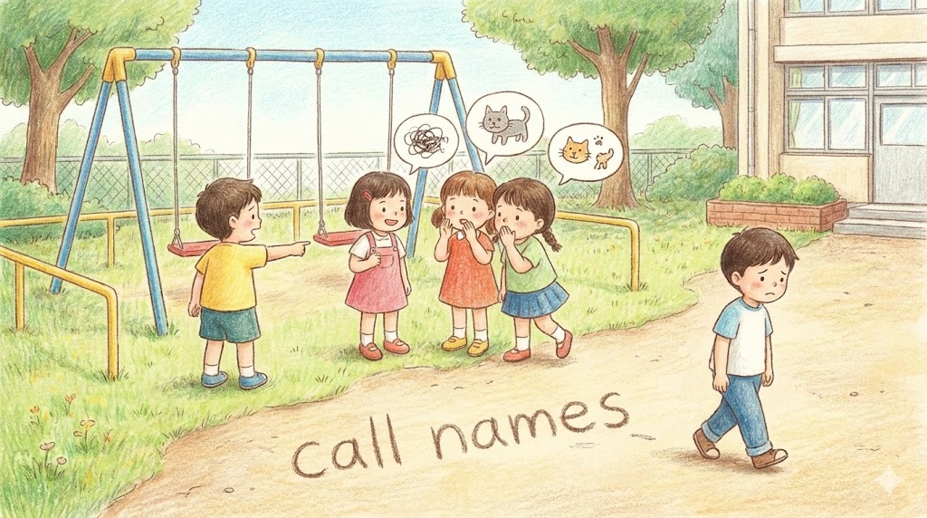 - 해석: 이름을 부르는 게 아니라, "멍청이", "바보" 같은 나쁜 별명으로 부르며 놀리는 것입니다.