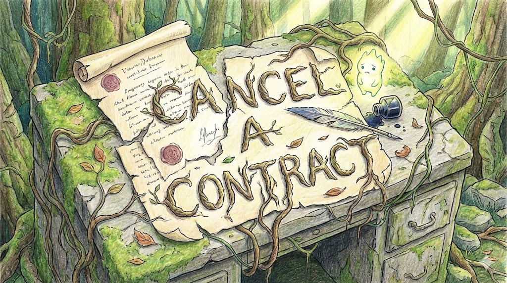 - Cancel a contract: 맺어놓은 계약을 법적으로 '파기하다(해지하다/철회하다)' 입니다.