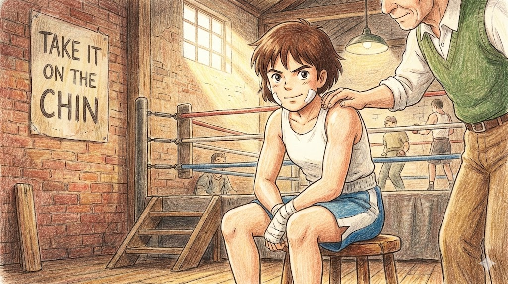 - Take it on the chin: 권투에서 턱을 정통으로 맞고도 버티는 모습에서 유래했습니다. 불행이나 비난, 패배를 변명 없이 '묵묵히 견뎌내다(의연하게 받아들이다)' 입니다.