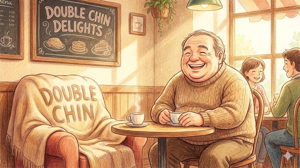 - 해석: 살이 쪄서 턱 밑에 살이 접혀 턱이 두 개처럼 보이는 것을 말합니다.