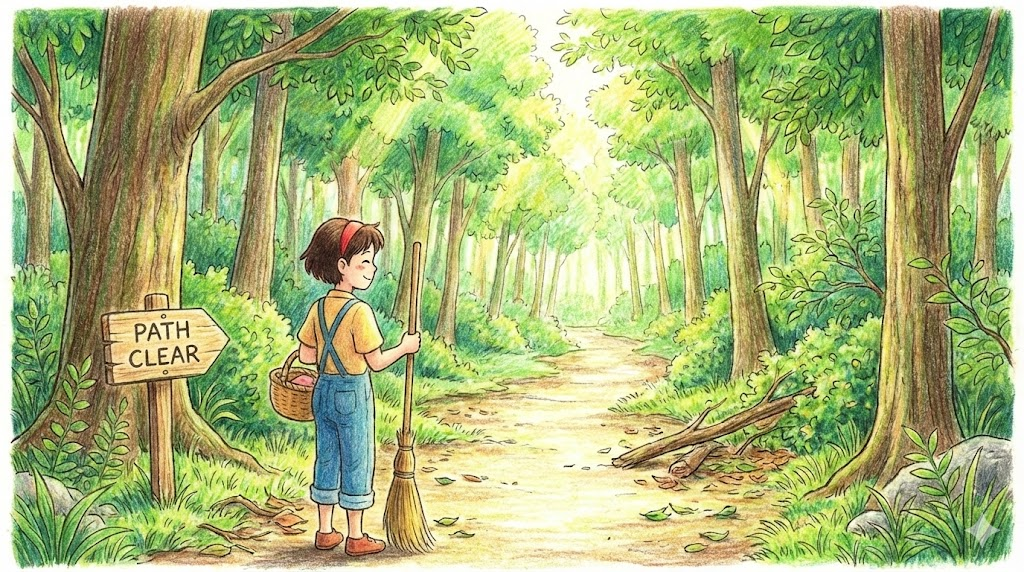 - 해석: 숲을 베어내어 경계가 뚜렷하다는 뜻에서, 애매모호함 없이 아주 확실하고 구분이 명확한 상황을 묘사합니다. (Definite)