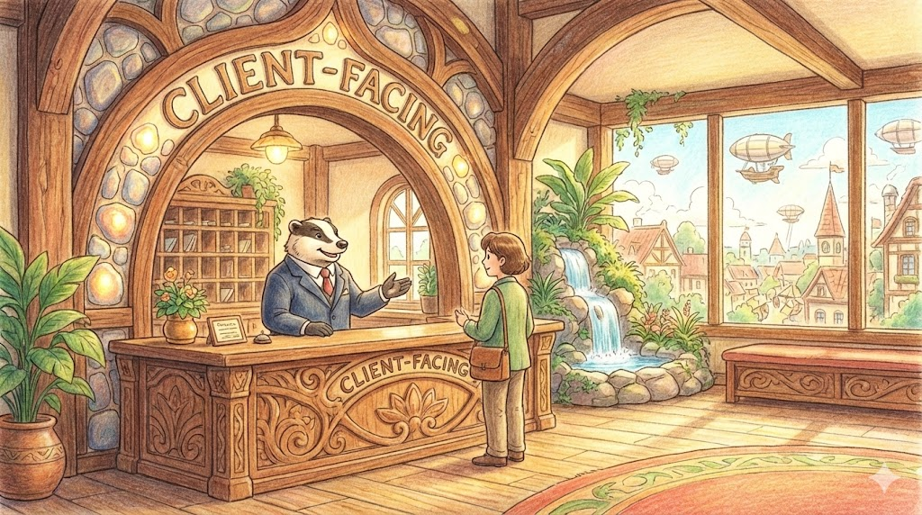 - Client-facing: 사무실 뒤에서 일하는 백오피스(Back-office)가 아니라, 직접 고객을 만나거나 응대하는 '대고객 업무의(고객을 상대하는)' 직무를 뜻합니다.
