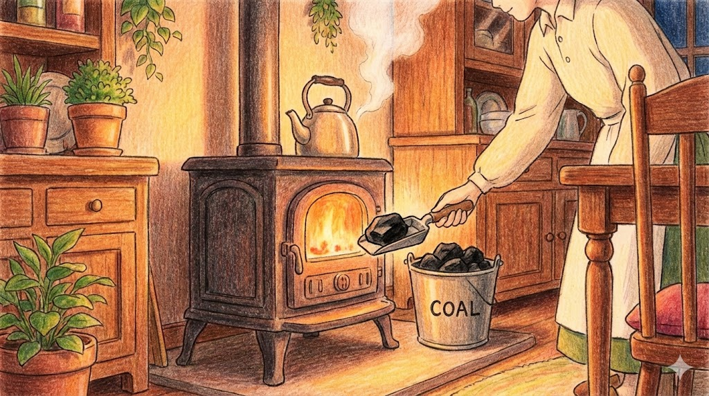 | 종합 뉘앙스 | (1) 땅에서 캐내는 검은 연료인 '석탄'. (2) 난로나 발전소를 돌리는 '에너지원'. | '타는 돌' |