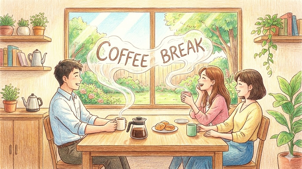 오전이나 오후 근무 중에 잠시 일을 멈추고 커피나 차를 마시며 쉬는 '10~15분 정도의 짧은 휴식' 을 말합니다. 동료들과 잡담(Small talk)을 나누며 머리를 식히는 소중한 시간입니다.