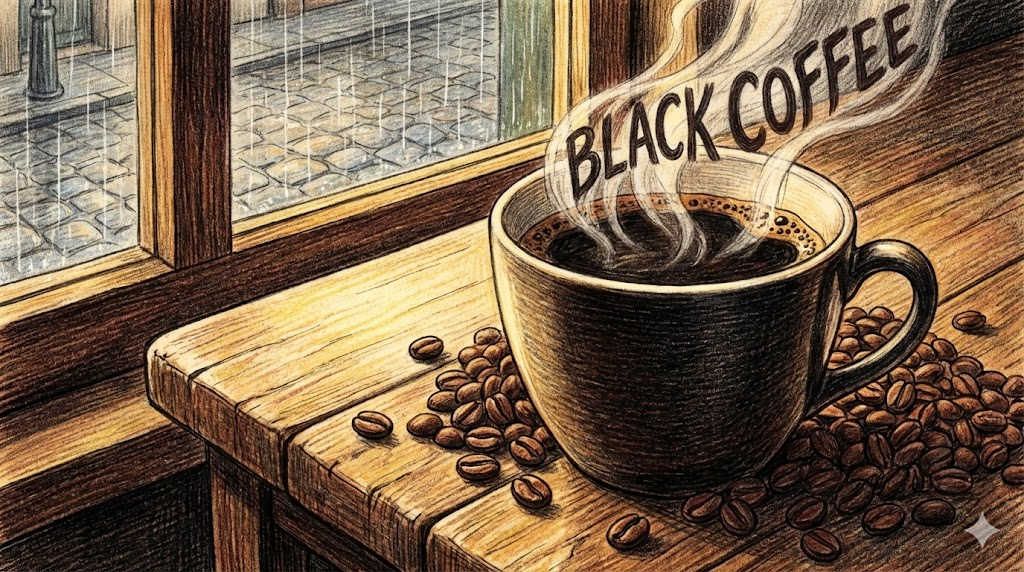 아무것도 첨가하지 않은 본연의 커피를 말합니다. 우유(Cream/Milk)나 설탕(Sugar)을 전혀 넣지 않은 상태로, '쓰고 진한 맛' 을 즐길 때 마시는 커피입니다. 주문할 때 "I'd like a coffee, black"이라고 하면 "블랙으로 주세요(아무것도 넣지 말아 주세요)"라는 뜻이 됩니다.