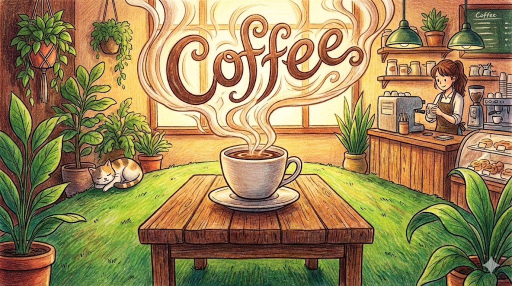 'coffee'는 전 세계적으로 사랑받는 "커피" 이자, 졸음을 쫓고 정신을 차리게 하는 "각성" 의 상징입니다. 또한, 바쁜 업무 중에 잠시 쉬어가는 "휴식" 이나 사람들과 대화하는 "사교" 의 매개체로도 쓰입니다.