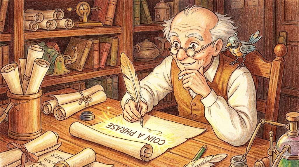 화폐(Coin)를 주조하듯이, 세상에 없던 새로운 단어나 용어(Term)를 '처음으로 만들어내는 것' 을 뜻합니다. 과학자, 작가, 혹은 사회 현상을 설명하는 사람들이 새로운 개념에 이름을 붙일 때 주로 사용합니다.