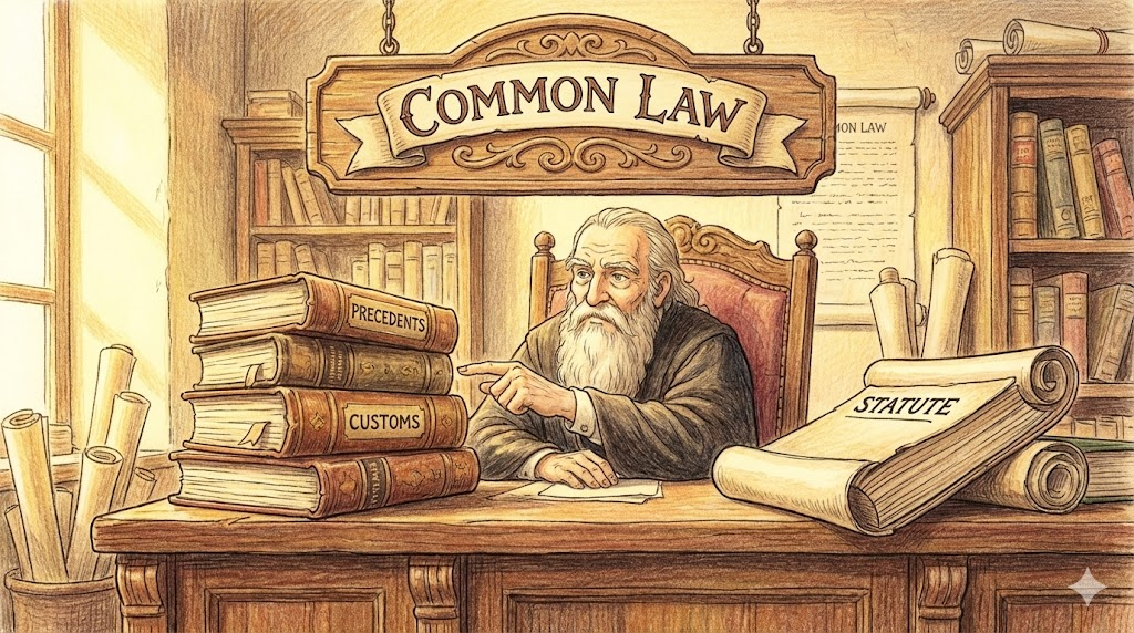 국회에서 만든 법조문(Statute)을 최우선으로 하는 '대륙법(Civil Law)'과 대비되는 개념입니다. 영국에서 시작되어 미국, 캐나다 등 영미권 국가들이 채택하고 있는 법 체계로, 글로 적힌 법전보다는 '과거의 판결(Precedent)과 관습을 중시하는 법' 입니다. 판사가 "이전 사건에서는 이렇게 판결했으니 이번에도 이렇게 한다"라고 판단하는 방식이 핵심입니다.