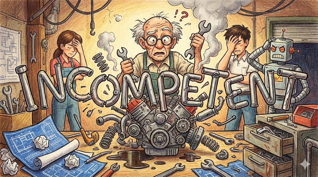 - 해석: (반의어 파생) 경쟁할 능력(competence)이 전혀 없는(in), 즉 업무 능력이 부족하고 무능한 사람을 묘사합니다.