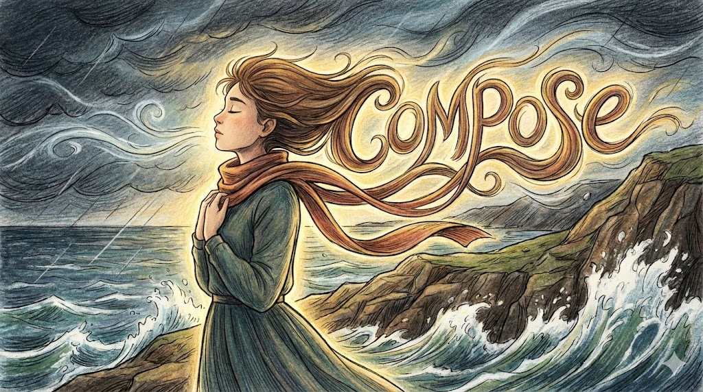 'compose'는 라틴어 com(함께) + *ponere(두다/놓다)*가 합쳐진 단어로, 여러 요소를 한데 모아 "구성하다" 라는 뜻이 기본입니다. 여기서 예술 작품을 "창작하다(작곡/작문)" 라는 뜻과, 흩어진 마음을 모아 "가다듬다(진정하다)" 라는 뜻으로 확장됩니다.