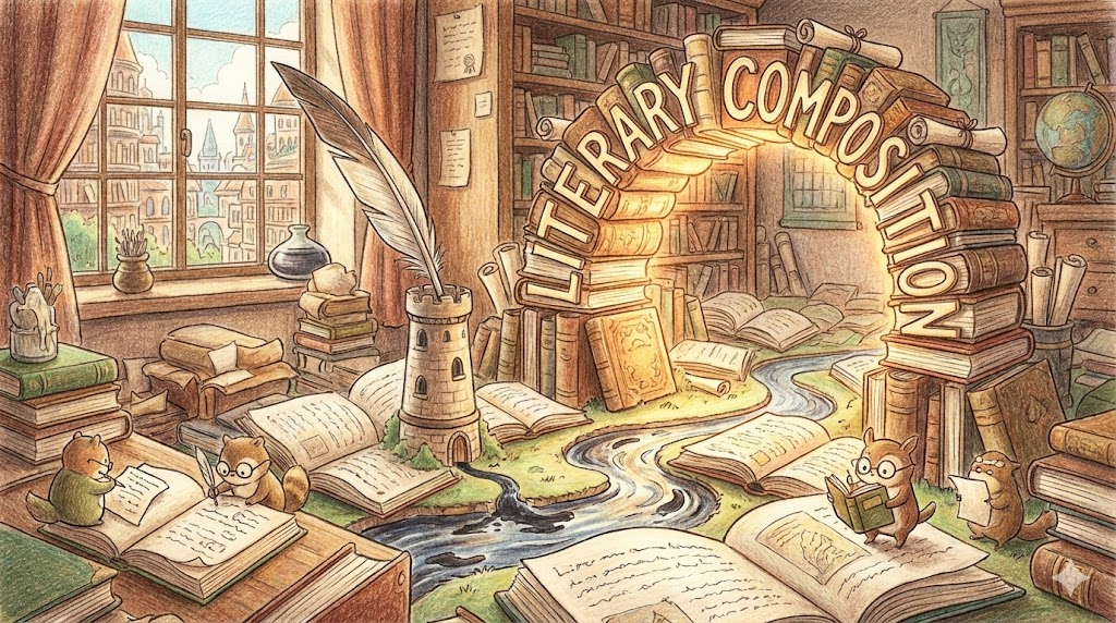 literary composition [ˈlɪtəˌrɛri ˌkɑmpəˈzɪʃən]