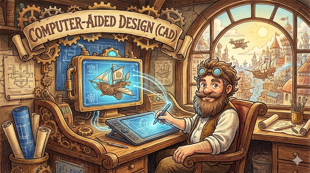 건축가, 엔지니어, 디자이너들이 건물, 기계 부품, 자동차 등을 설계할 때 사용하는 전문 소프트웨어를 말합니다. 예전에는 제도판에서 자와 펜으로 그렸던 도면을 컴퓨터로 정밀하게 작성하는 기술입니다. 단순히 그림을 그리는 것이 아니라, 치수, 재질, 구조 등을 정확하게 계산하여 실제 제품을 만들기 위한 '설계도'를 그리는 데 초점이 맞춰져 있습니다.