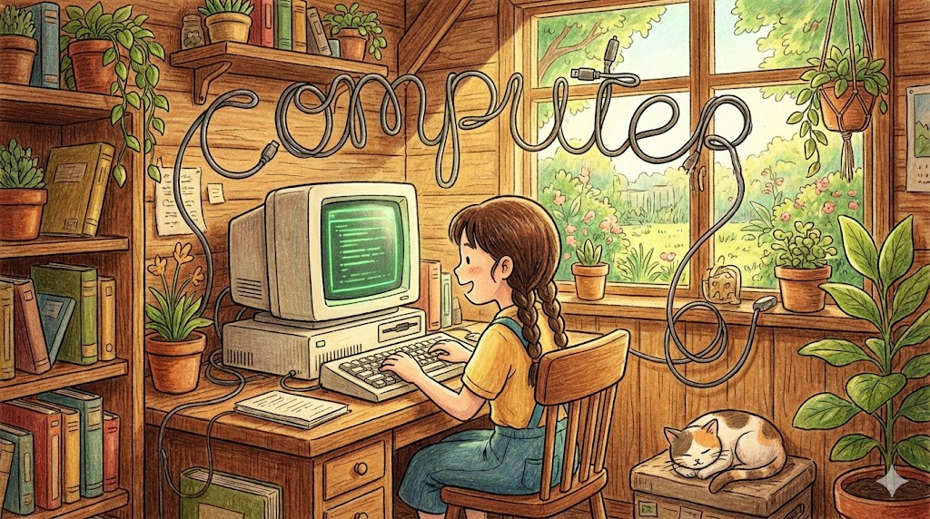 'computer'는 라틴어 *computare(계산하다)*에서 유래했습니다. 원래는 "계산하는 사람"을 뜻했지만, 지금은 정보를 처리하고 저장하는 "전자 계산기(컴퓨터)" 를 의미합니다. 현대 영어에서는 단순한 기계를 넘어 "정보화 시대" 의 핵심 도구로 쓰입니다.
