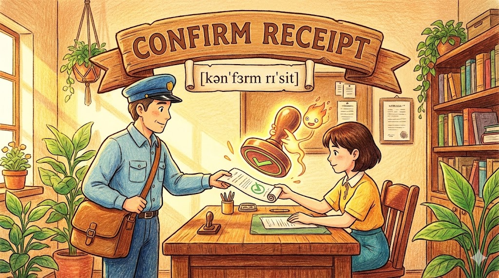 - Confirm receipt: 이메일이나 물건을 잘 받았다고 '수신을 확인하다(접수 확인)' 입니다.