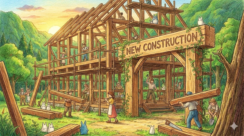 - 해석: (생활/표지판) 건물이나 웹사이트가 아직 완성되지 않고 지어지고 있는 상태입니다.
