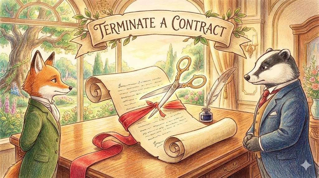 - 해석: (비즈니스) 계약 기간이 끝나거나 합의하에 계약 관계를 끝내는 것입니다.