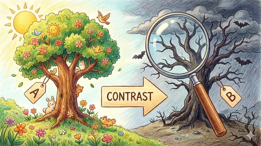 - Contrast: Differences (차이점 찾기).