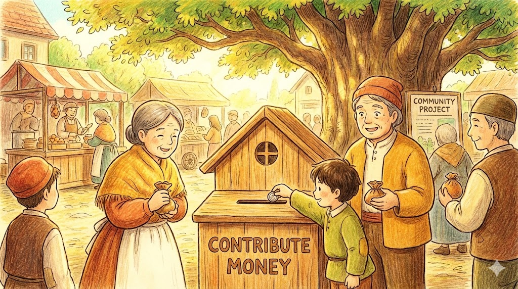 무언가를 공동의 목적을 위해 '내놓다(Give)' 입니다.