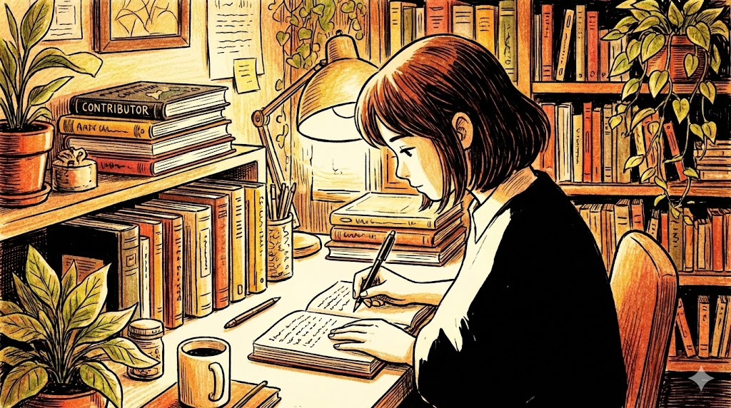 단순히 글을 쓰는(Write) 것을 넘어, '신문, 잡지, 학술지, 웹사이트 등에 실릴 목적으로 글을 써서 보내는 행위' 를 말합니다. 전문 작가나 기자뿐만 아니라, 외부 전문가가 자신의 지식을 나누기 위해 글을 보내는 경우(Guest post)에도 많이 씁니다.