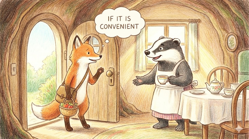 - Mutually convenient: 나만 편한 게 아니라 양쪽 다 편한, '상호 간에 편리한(서로 시간이 맞는)' 입니다.