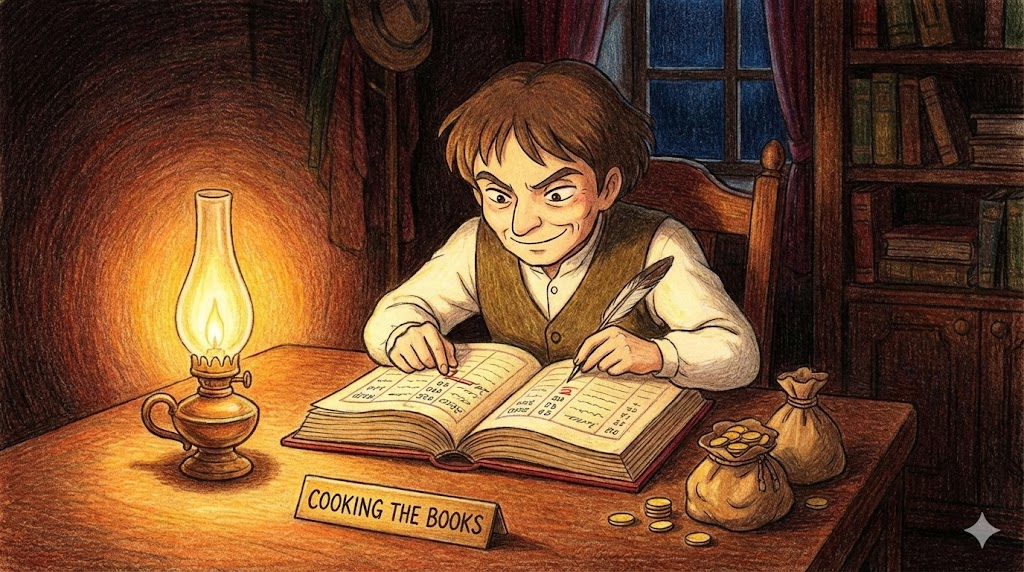 2. cook the books (장부를 조작하다/분식 회계하다)