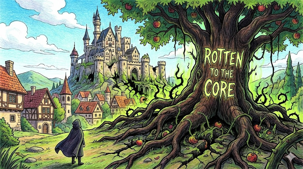 사과가 겉은 멀쩡해 보여도 속(Core)부터 새까맣게 썩어 있는 모습에서 유래했습니다. 단순히 한두 번 잘못을 저지른 게 아니라, 도덕성이나 정체성 자체가 완전히 타락하여 구제 불능인 상태를 비유할 때 씁니다. 부패한 정치인, 범죄 조직, 혹은 사악한 인격을 묘사할 때 사용하는 아주 강도 높은 비판입니다.