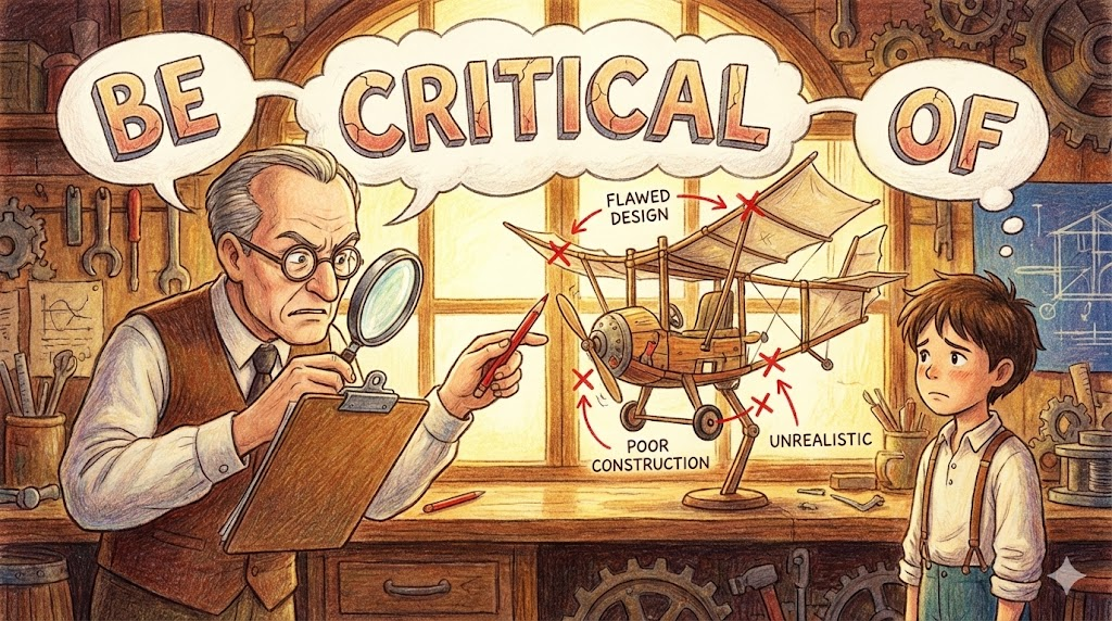 be critical of [bi ˈkrɪtɪkəl ʌv]