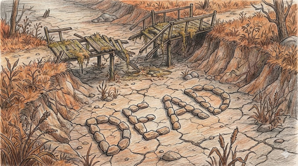 'dead'는 고대 영어 *dēad(생명이 없는, 죽은)*에서 유래했습니다. 물리적으로 생명이 끝난 상태를 뜻하는 것이 기본이지만, 수능이나 회화에서는 무언가가 "완전히(Completely)" 끝났거나 멈춘 상태, 혹은 기능이 상실되어 "쓸모없는" 상태를 강조하는 비유적 수식어로 훨씬 더 광범위하게 쓰입니다.