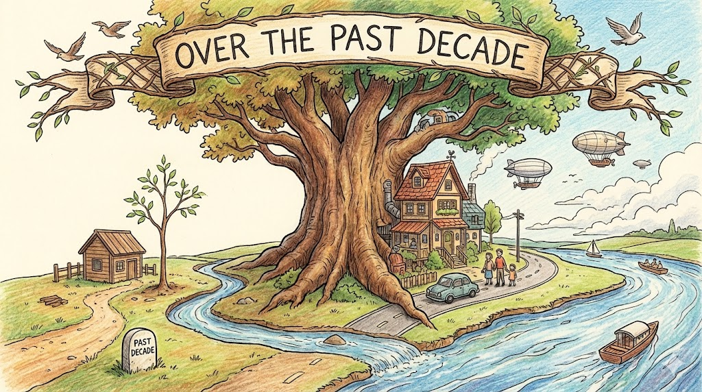 현재를 기준으로 바로 직전의 10년 동안 일어난 지속적인 변화, 발전, 혹은 경험을 나타낼 때 씁니다. 주로 현재완료 시제(have + p.p.)와 함께 쓰여 "지난 10년간 ~해왔다"라는 의미를 만들며, 프레젠테이션, 뉴스 기사, 일상 대화에서 트렌드나 개인의 역사를 되돌아볼 때 아주 자주 사용되는 핵심 패턴입니다.