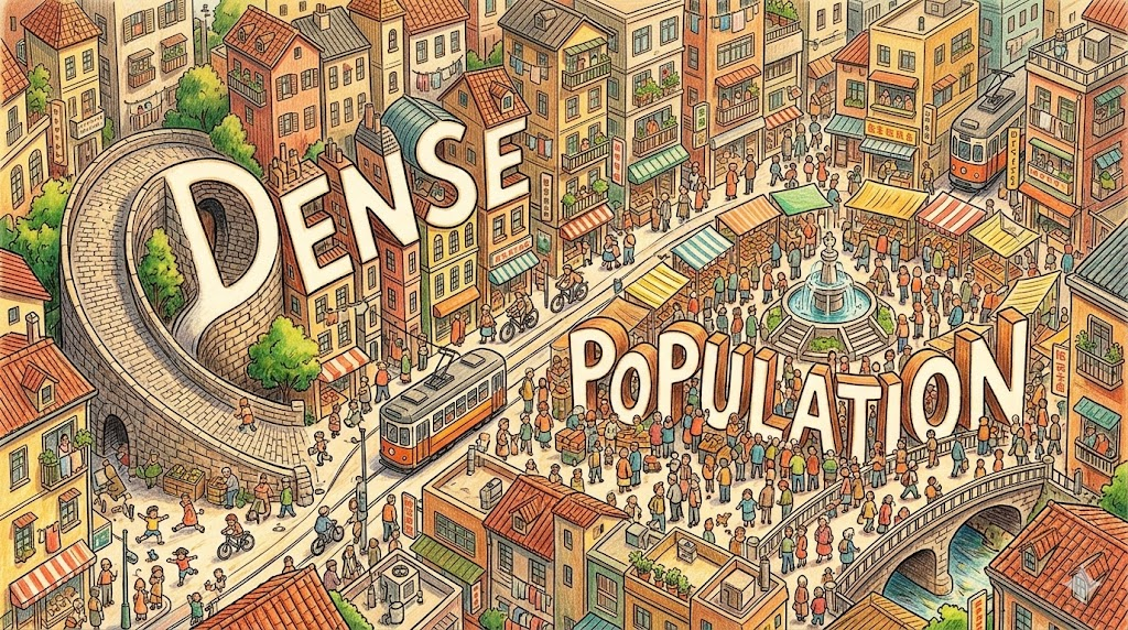 | 물리적 밀집 | dense population | 조밀한 인구 | 좁은 면적에 사람들이 몰려 사는 상태 |