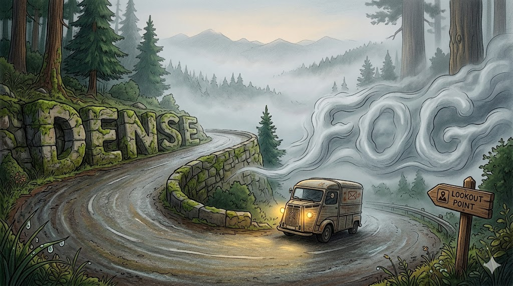 | Dense | 단순한 고밀도: 숲, 인구, 연기 등 무언가가 아주 꽉 차 있어서 뚫고 지나가거나 소화하기 벅차다는 느낌을 줄 때가 많습니다. | 약간 답답하거나 무거운 뉘앙스가 섞일 수 있음. |