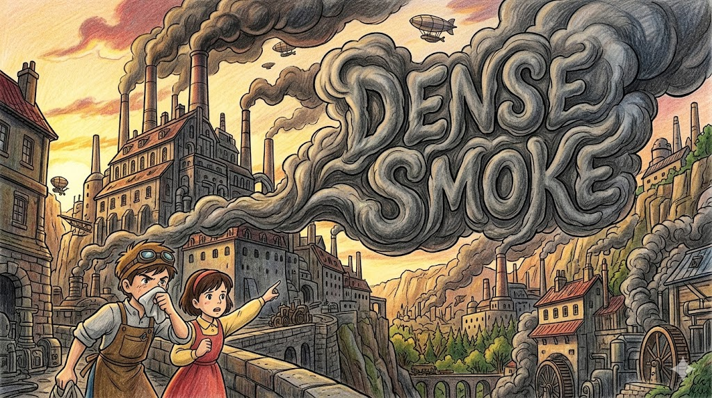 - dense smoke: 화재 등으로 인해 공기를 꽉 채우며 피어오르는 '자욱한 연기' 입니다.