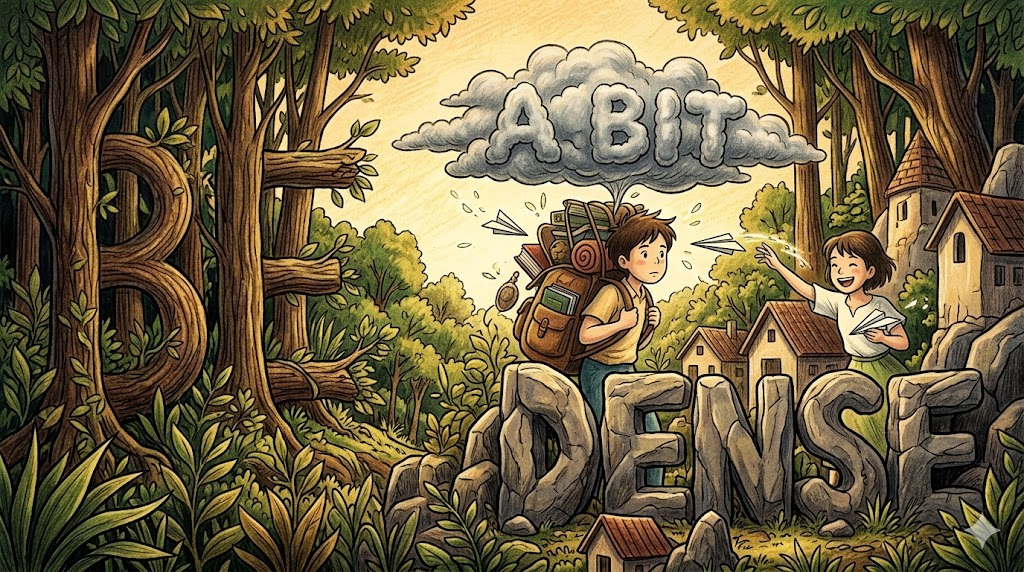 'Dense'가 숲의 빽빽함부터 사람의 눈치 없음까지 '꽉 차 있어서 답답하거나 묵직한' 느낌으로 연결되는 점이 잘 정리되셨길 바랍니다.