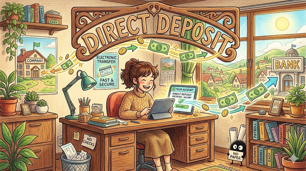 - 해석: (비즈니스) 월급이나 환급금 등이 수표나 현금 형태가 아니라, 개인의 은행 계좌로 직접 꽂히는 시스템을 말합니다.